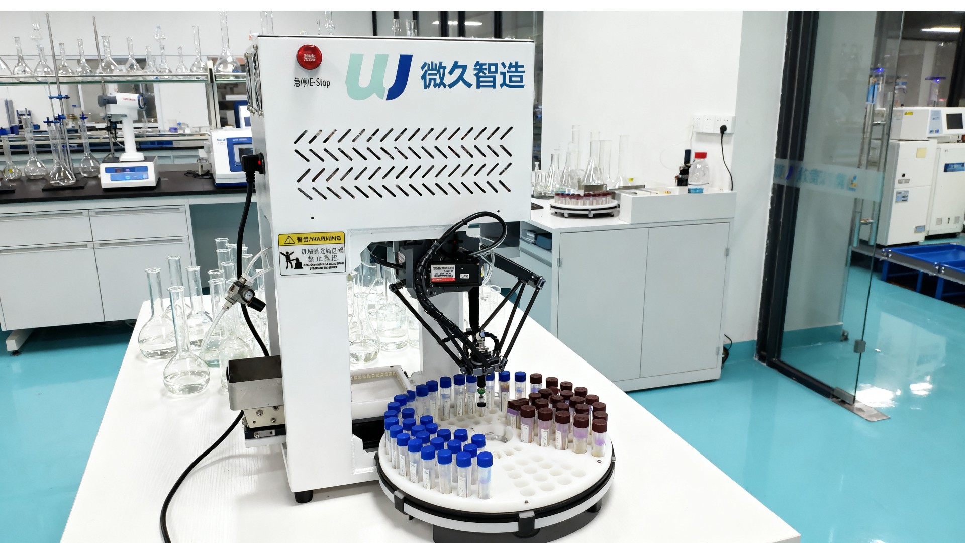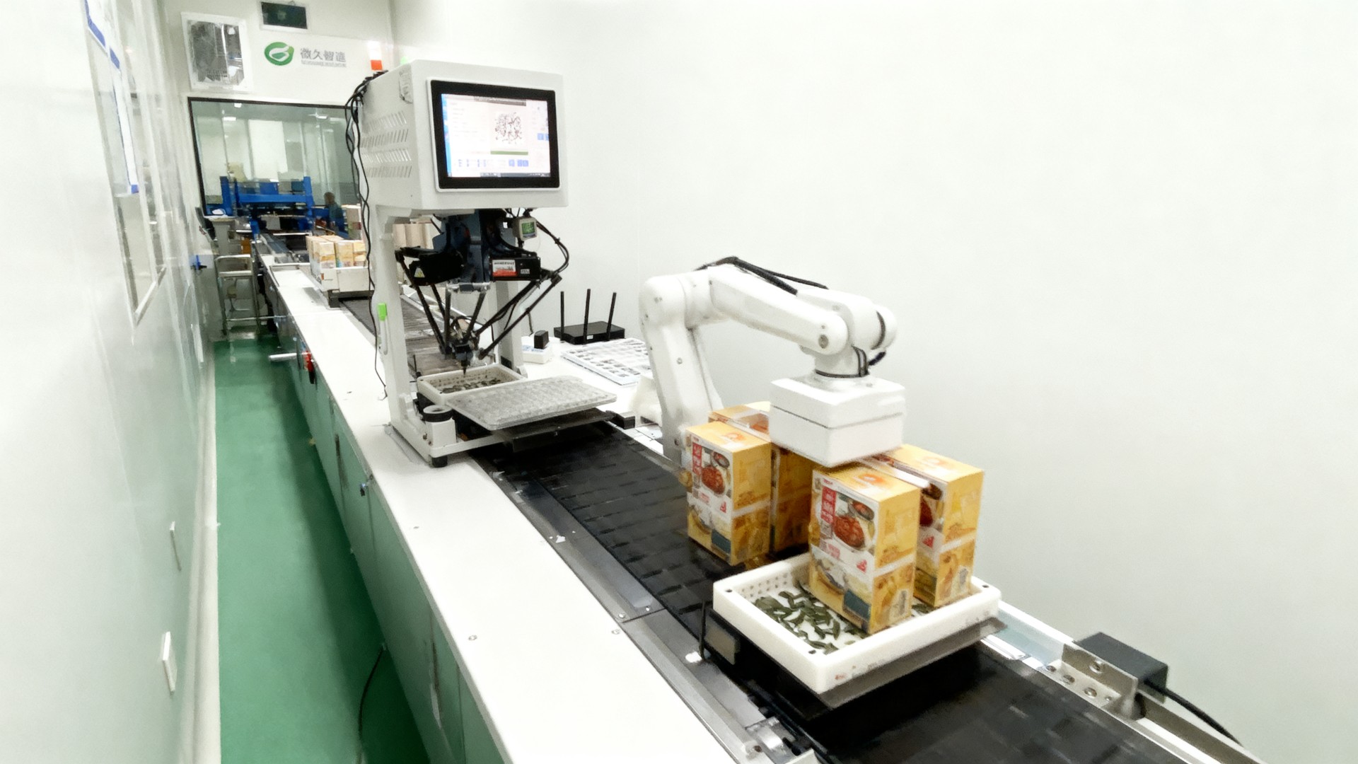 微久智造蜘蛛手机器人公司简介 微久智造上料摆盘机公司向外宣传